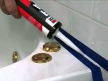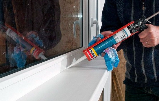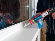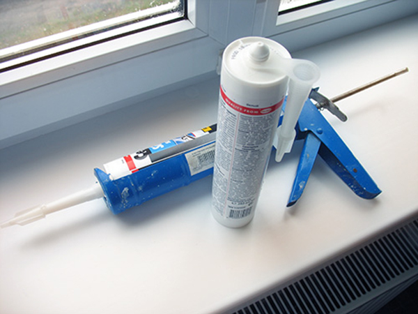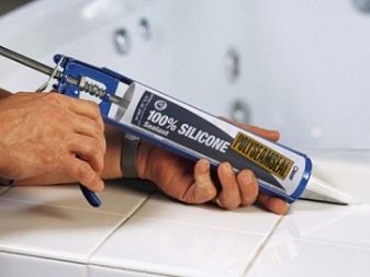 - Als nächstes nehmen Sie eine Pistole mit einer Silikonmasse. Es ist notwendig, die Mischung vorsichtig aufzutragen, gleichmäßig auf die verbundenen Produkte zu verteilen.