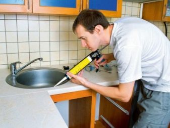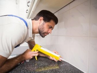 Farbige Silikondichtstoffe sind heute sehr beliebt. Sie sind nicht nur in Innenräumen, sondern auch im Außenbereich weit verbreitet. Farbiges Silikon ist in der Lage, verschiedene Verbindungen zum Schutz vor Leckagen zu isolieren. Mit ihm können Sie die Risse auf der Küchenarbeitsplatte loswerden.Es ist auch möglich, die Fugen zwischen den Sanitäreinrichtungen mit der Basis der Verbindung zu verschließen (zum Beispiel die Naht zwischen der Küchenarmatur und der Spüle).