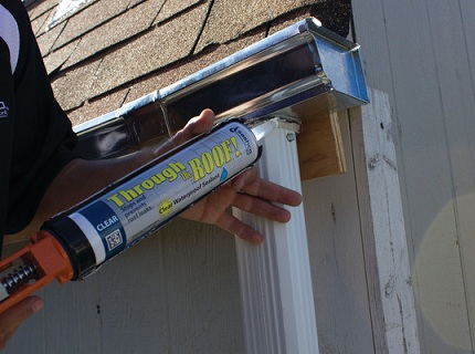 Mit Hilfe von Silikondichtstoff können Sie nicht nur in Gebäuden, sondern auch außerhalb von Gebäuden verlegen. Zum Beispiel, um die Abdichtung von Nähten an einem Abflussrohr zu machen. Sie können die Steinplatten reparieren, die sich von der Basis weg bewegen. Aber auch beim Verlegen des Daches kommt Dichtstoff zur Rettung.