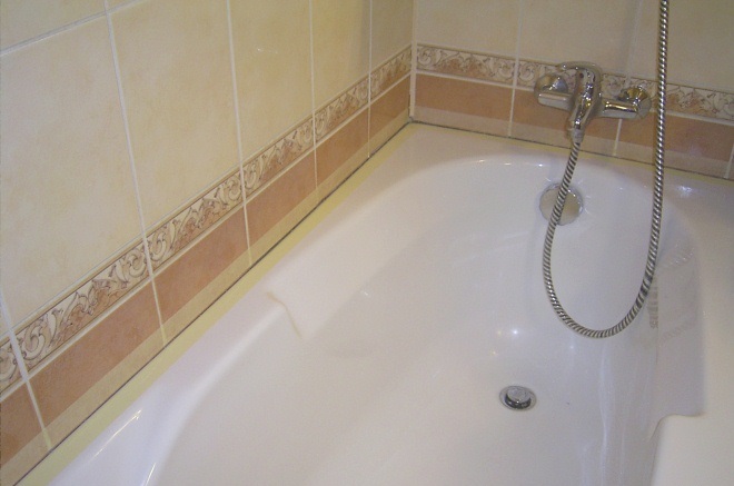 - Wir warten darauf, dass es trocknet, danach ist es möglich, die Naht in einer anderen Farbe zu streichen (falls das Silikon Acryl war).