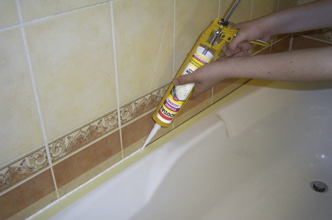 Natürlich findet der aktive Einsatz von Dichtstoffen in Räumen mit hoher Luftfeuchtigkeit statt, zum Beispiel in einem Badezimmer. Alle Verbindungen von Rohren, Fugen, Rohrleitungen, in jeder Ecke gibt es eine Dichtungsmasse.