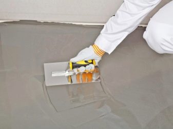 Solche Materialien werden in einer dicken Schicht aufgetragenDadurch können sie schweren Lasten standhalten. Die Technik der Anwendung dieser Materialien ähnelt der Arbeit mit Gips: Die Zusammensetzung wird verdünnt, dann auf einen Spatel aufgetragen und an Wänden oder auf dem Boden verschmiert.