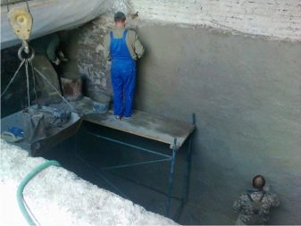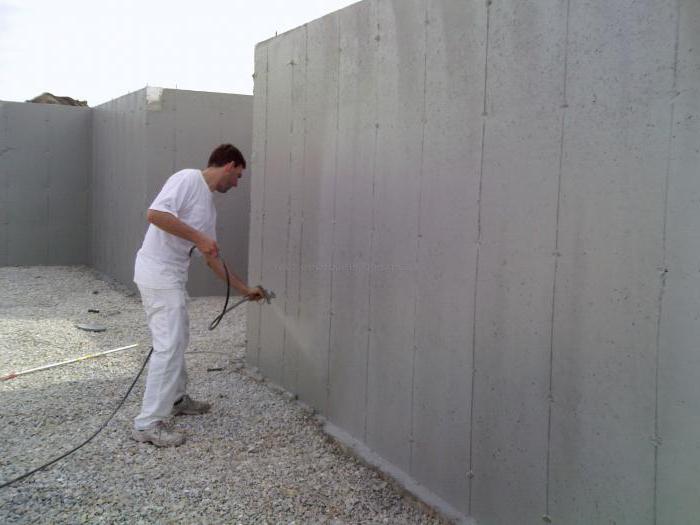 - Zement mit dem Zusatz von Latex. Polymermischung, ähnlich einem flüssigen Gummi, entworfen, um auf die Technologie der heißen Anwendung zu sprühen. Es schützt die Oberfläche nicht nur vor Feuchtigkeit, sondern auch vor zufälligen mechanischen Beschädigungen.