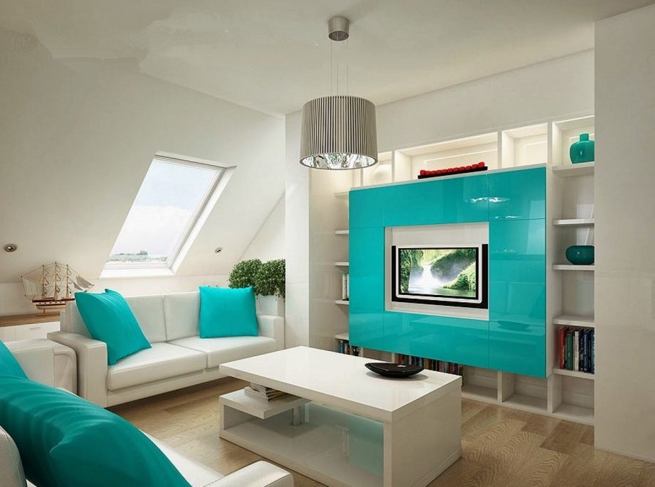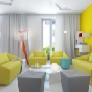 - Für ein kleines Wohnzimmer geeignete Möbel in hellen Farben. Auf diese Weise können Sie den Raum visuell vergrößern und mehr Licht in den Raum bringen.
