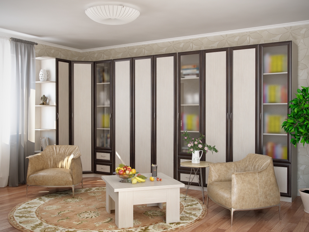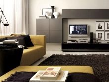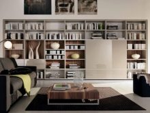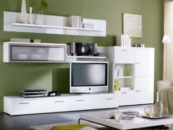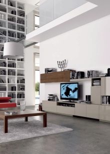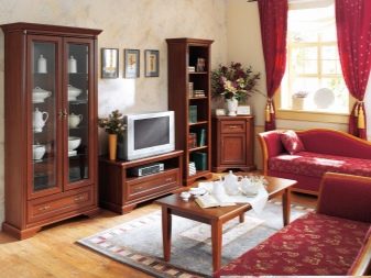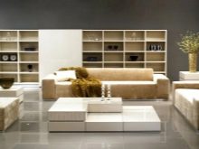 Das Wohnzimmer ist ein Ort, an dem viele Dinge aufbewahrt werden. Hier finden Sie verschiedene Souvenirs, Bücher, Fotoalben und vieles mehr. Um all diese notwendigen Dinge zu lagern und modulare Gehäusebestandteile zu benötigen - Schränke, Regale, Kommoden. Oft sind im Bausatz Ständer für Pflanzen und andere Utensilien zu sehen.