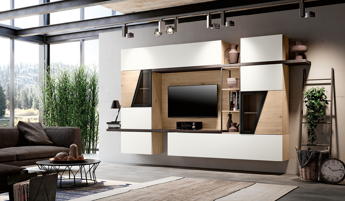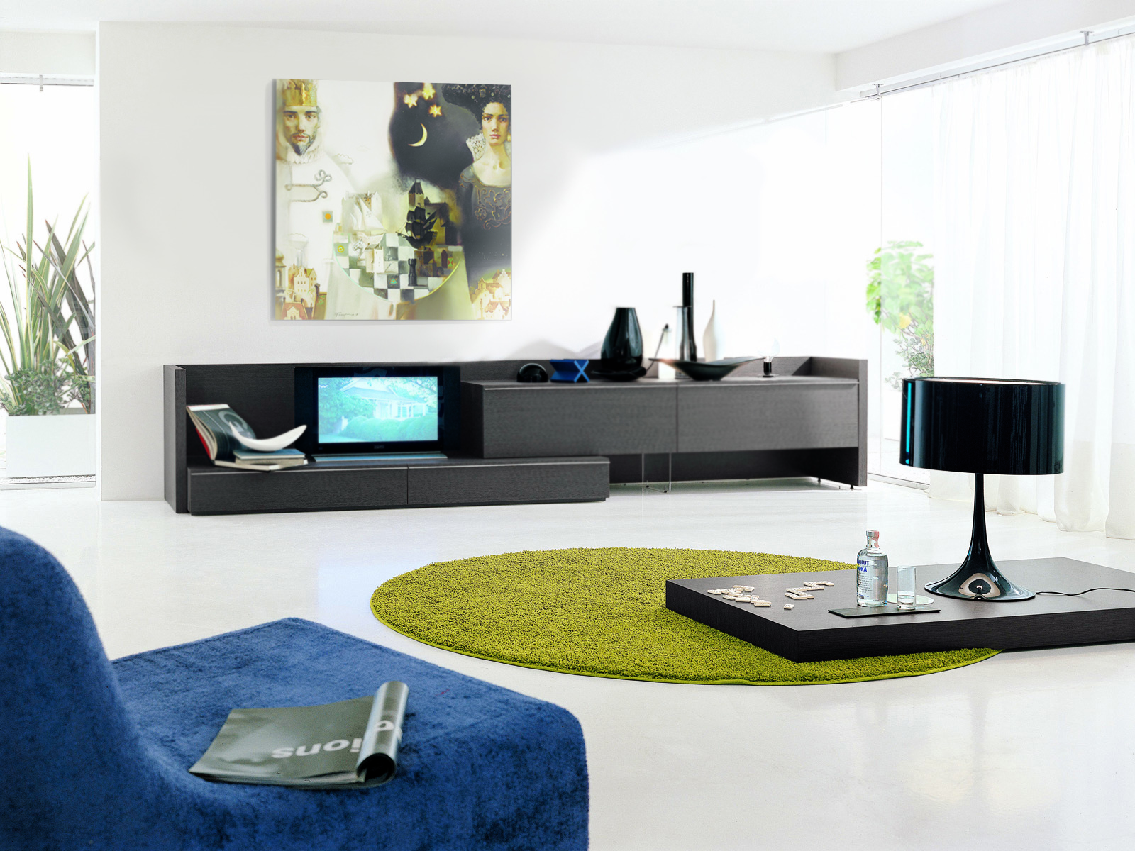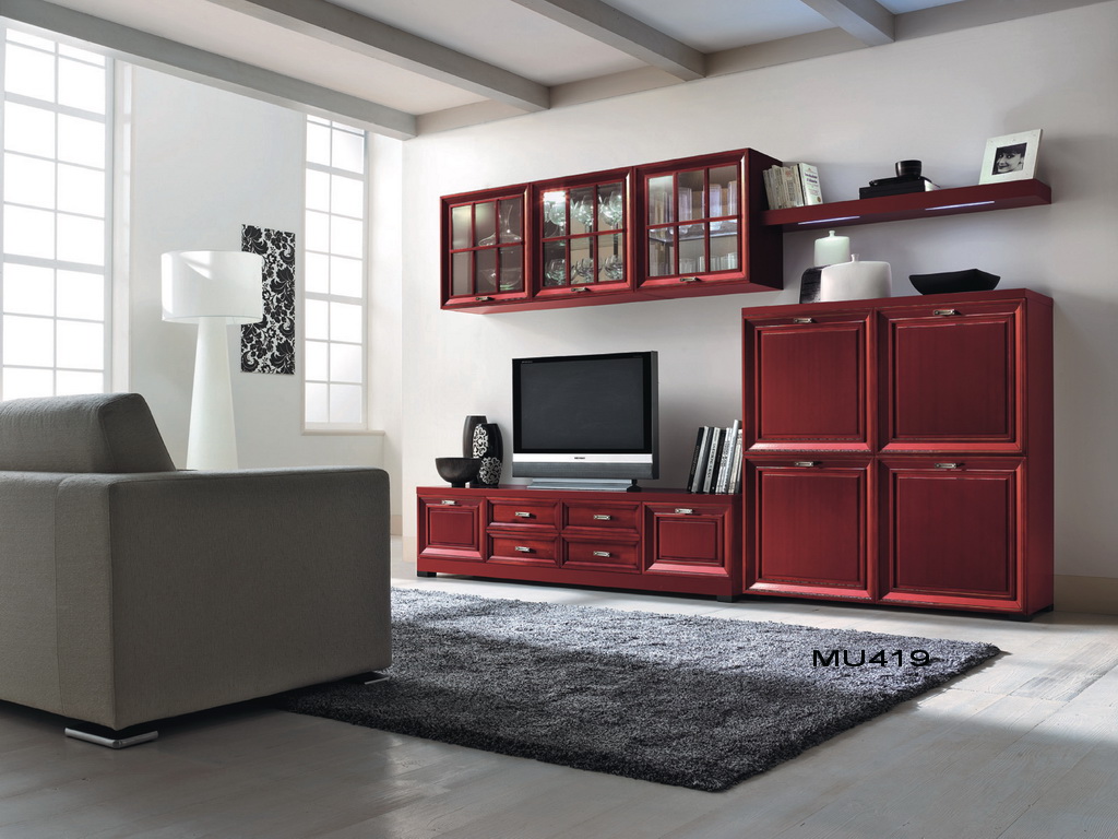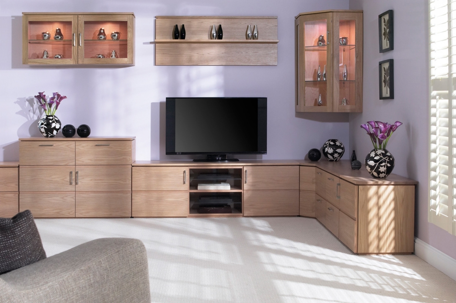 Das gesamte Set sollte im gleichen Stil und aus dem gleichen Material hergestellt werden. Wir sollten die Harmonie des modularen Sets und des gesamten Raumes nicht vergessen. Das Wohnzimmer ist ohne Polstermöbel undenkbar. Polsterfarben können mit der Farbe der Möbel kombiniert werden und als kontrastierender Akzent wirken. Ihre Rolle ist es, eine gemütliche und gemütliche Atmosphäre zu schaffen. Neben Eckschränken, stellen und verschiedene Konfigurationen von Schränken.