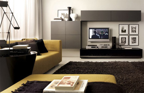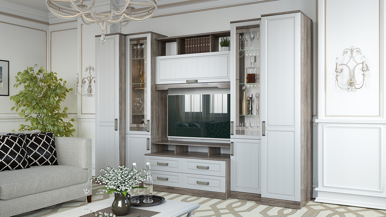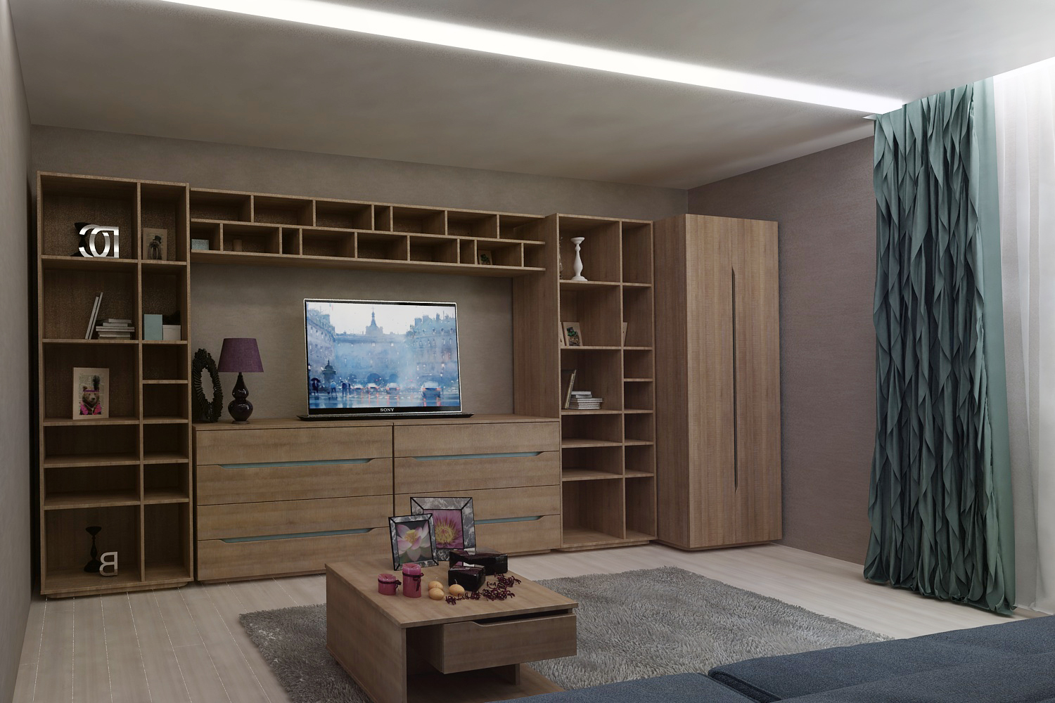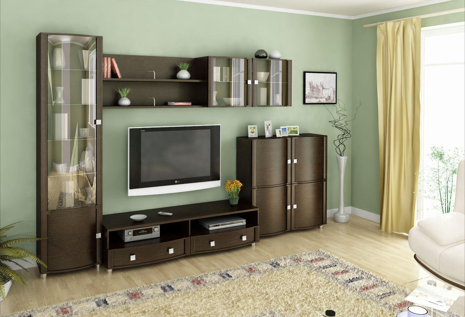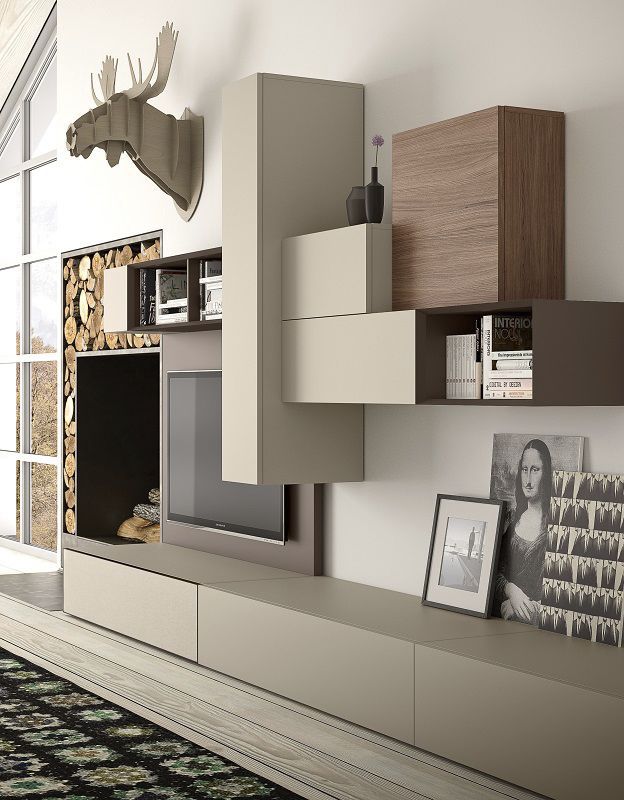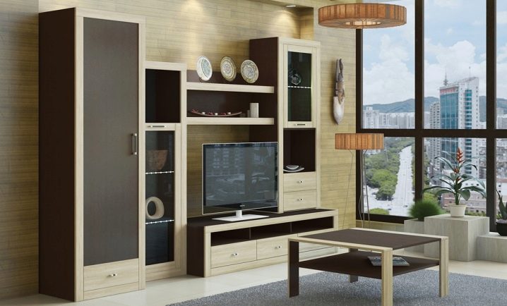 Installieren Sie diese Möbel im Wohnzimmer ist nicht schwierigweil es keine einzige überwältigende Struktur ist. Dies ist ein großes Plus für Fans periodischer Permutationen.
