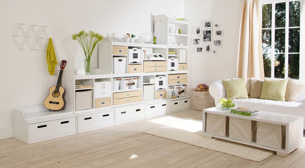 Mit Hilfe von modularen Möbeln können Sie sogar eine Raumzonierung vornehmen. Bücherregale sind beispielsweise gut geeignet, um den Sitzbereich im Wohnzimmer hervorzuheben. Ändern Sie den Innenraum, können Sie den Zweck des Raumes vollständig ändern.