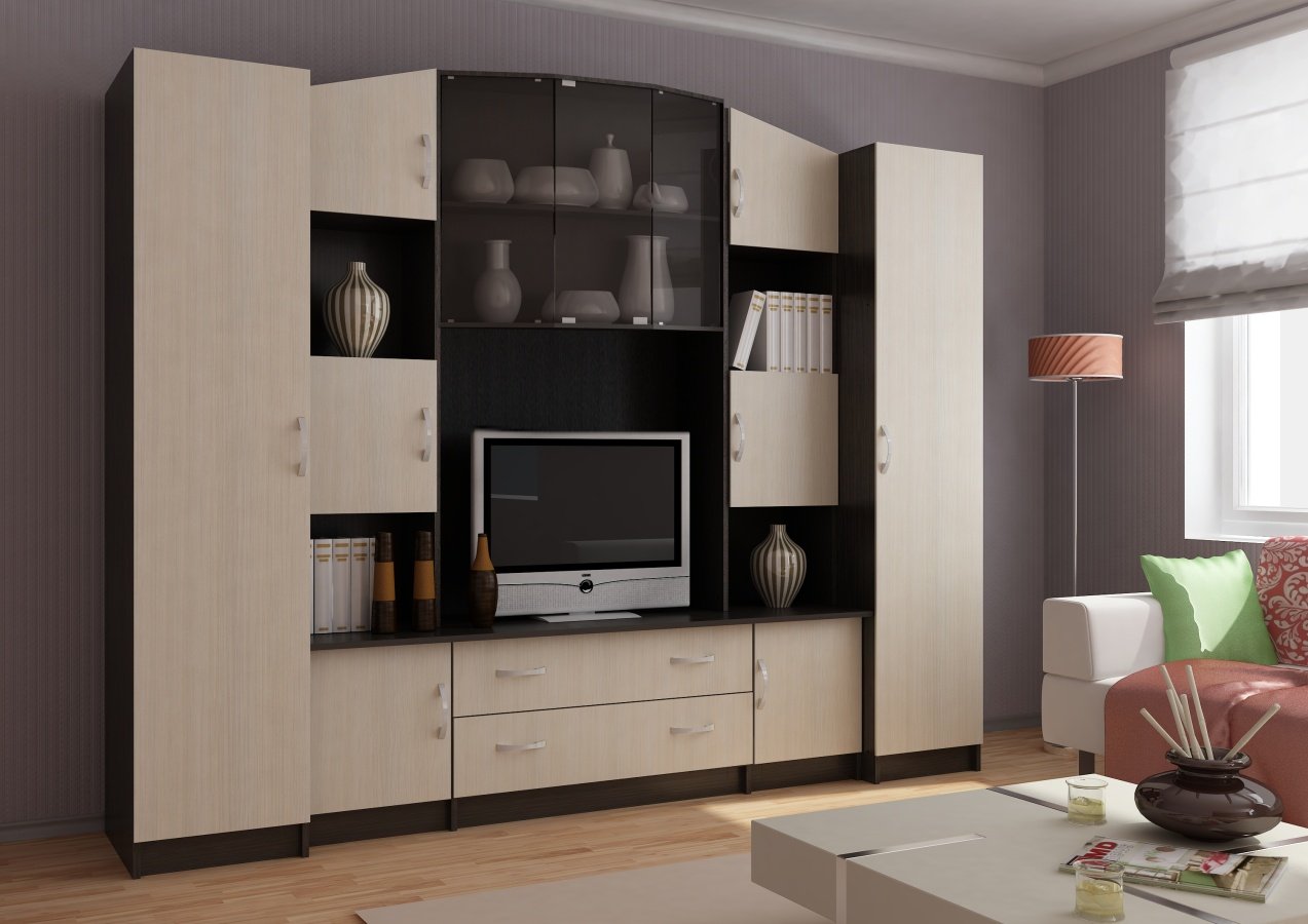 Schrankmöbel, bestehend aus Funktionsmodulen, haben große Vorteile gegenüber der klassischen Wand. Sein Hauptvorteil ist Bequemlichkeit. Module sind leicht und klein. Sie können zusammen oder zwischen vorhandenen Einrichtungen platziert werden.
