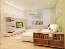Wenn Sie eine Familie gegründet haben, haben Sie keine Angst, dass Sie sich in einer Einzimmerwohnung unwohl fühlen. Schließlich werden Sie sich bei guter Planung in Gesellschaft aller Familienmitglieder wohl fühlen. Zum Beispiel, trennen Sie die Krippe mit einem Vorhang oder Sofa mit einer hohen Wand, während Sie einen Spielplatz für Ihr Baby schaffen. Dies wird Ihnen helfen, sich auch nach der Ankunft der Gäste wohl zu fühlen, denn Ihr Kind wird mit seinen Spielsachen beschäftigt sein und gleichzeitig unter Ihrer Aufsicht stehen.