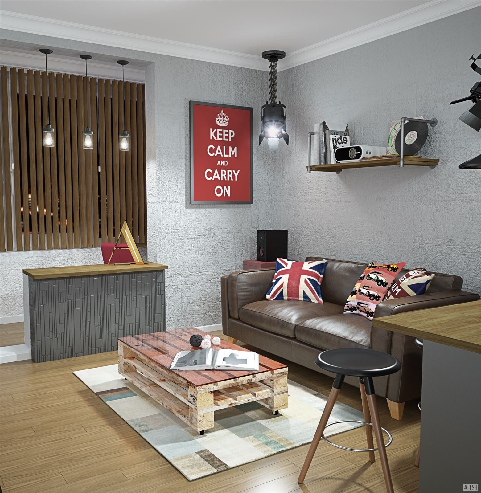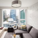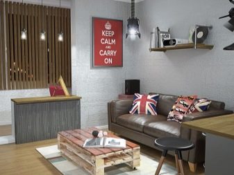 Für diejenigen, die sich nicht von den beiden vorherigen Optionen inspirieren lassen, sollten Sie genauer hinsehen. zu Loftstil. Es zeichnet sich durch freiliegende Wände, Panoramafenster und eine begrenzte Anzahl an Möbeln aus. Um ein solches Wohnzimmer zu dekorieren, wenden Sie abstrakte Malerei, Schwarz-Weiß-Fotografie und sogar Stehlampen aus Metall an.