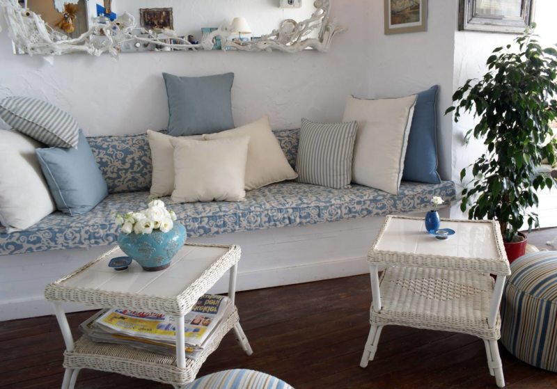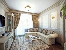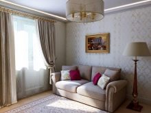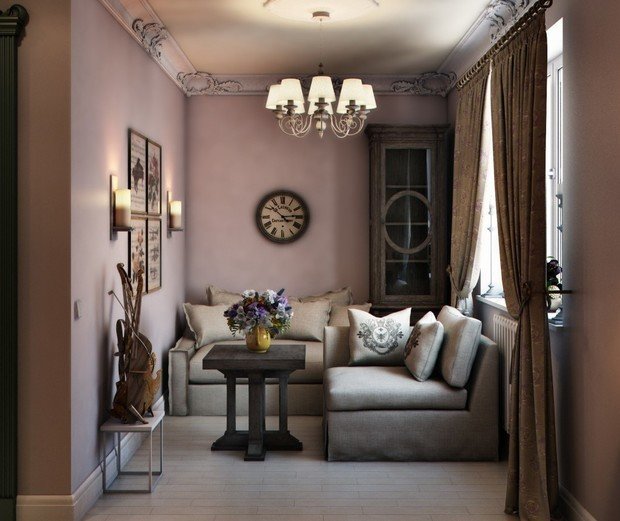 Eine ausgezeichnete Alternative zum klassischen Design ist Provenzalisches Wohnzimmer - Es wird alle ansprechen, die die Romanze mögen. Sie können sicher Spitze verwenden, Tapete mit Blumendrucken kleben, für Dekoration beige, blau, Pfirsich und sogar Grautöne verwenden. Wenn die Reparatur abgeschlossen ist, bleibt es nur, die Gäste anzurufen und eine angenehme und gemächliche Teeparty zu arrangieren.