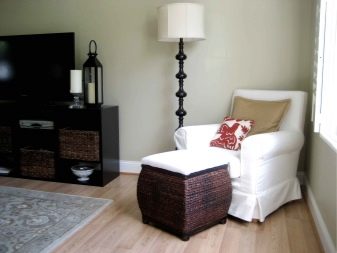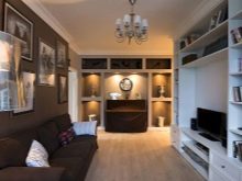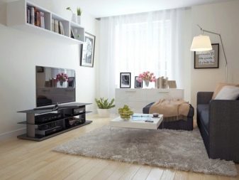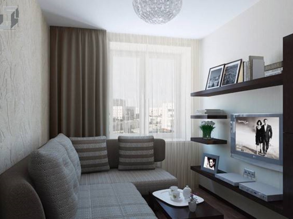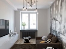 Da das Wohnzimmer klein ist, sollten die Abmessungen der zu platzierenden Möbel und ihre praktischen Eigenschaften im Vordergrund stehen. Ein überhöhter Wert ist jedoch strikt kontraindiziert und eine Reduzierung der Funktionalität von Produkten ist nicht zumutbar. Die Mezzanine- und Volumenschränke, auch in Form von Sesseln und Schränken, sind längst aus der Mode gekommen. Die letzte Zeit Priorität ist Verwendung von Transformatoren.