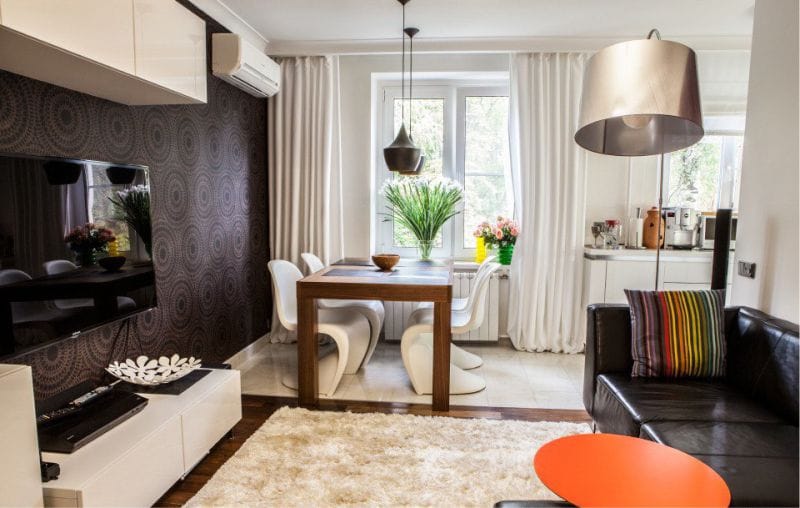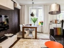 In einem kleinen Bereich ist es sehr schwierig, große Veränderungen zu planen, insbesondere bei der Platzierung von großen Möbeln und Geräten. Aber wie die Praxis der Designer zeigt, gibt es hier keine unüberwindbaren Hindernisse! Sie müssen nur die Praxis anderer Leute sorgfältig überprüfen und sehen, wie diese oder jene Lösung in einem Foto aussehen wird. Unter dieser Bedingung, auch in einem kleinen Bereich, werden die modernsten Ideen, Avantgarde und außergewöhnliche Methoden durchaus angemessen sein und genau das Ergebnis geben, auf das Sie zählen.