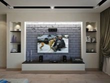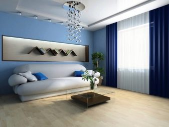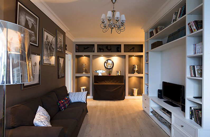 Die ursprüngliche (aber nicht in allen Fällen angemessene) Bewegung ist die Verwendung künstlerischer Malerei. Gipskartonwände lassen sich leicht mit beleuchteten Nischen schmücken, Aquarien, Geräte, Sammlerstücke sind darin versteckt und geben Raum frei.