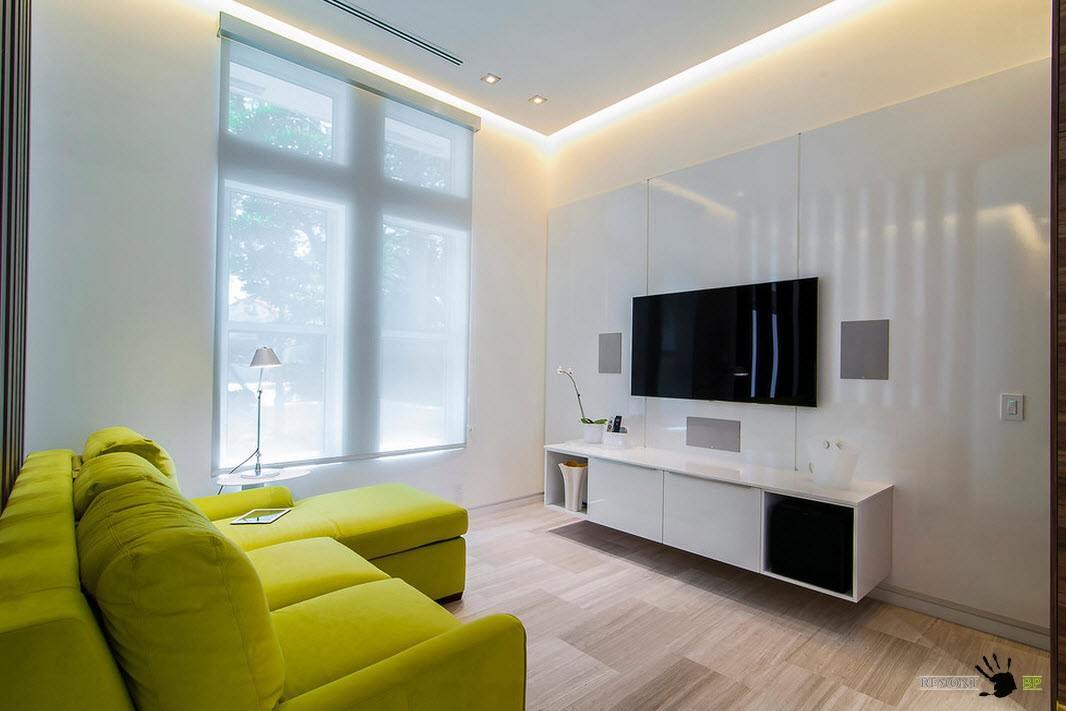 Helle Farben werden empfohlen, selbst die am besten vorbereiteten Designer zu verwenden, um den Raum weiter wahrzunehmen, und Sie können vermeiden, dass die Atmosphäre durch Hinzufügen einer begrenzten Anzahl von dunklen Einsätzen gleichmäßig ausgeblendet wird. Egal wie stilvoll ein bestimmter heller Ton in sich ist, seine übermäßige Einführung in das Wohnzimmer ist kontraindiziert, dies führt zur Raumabsorption.