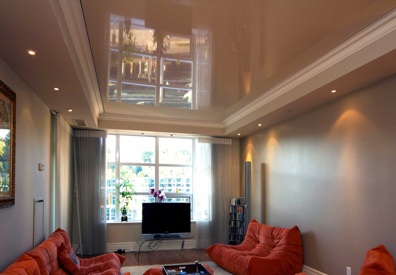Um einen Dachboden zu erstellen, spannen Sie Deckenstrukturen mit einem Spiegeleffekt auf. Sie konkurrieren erfolgreich mit zweistufigen Trockenbausystemen und kombinierten Lösungen. Am günstigsten wird die Ausrichtung mit der Färbung in Weiß sein.
