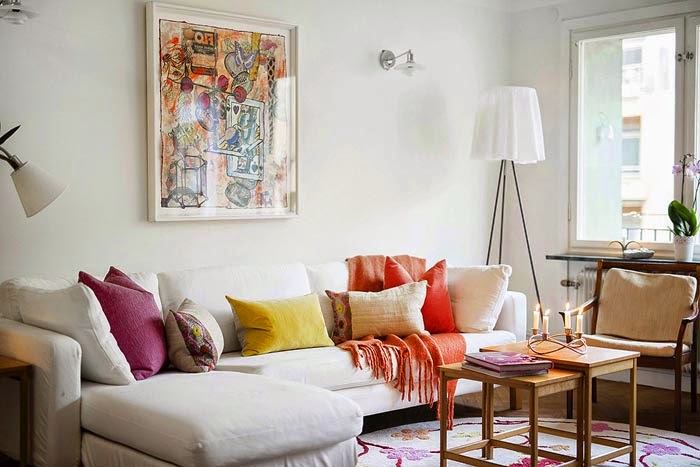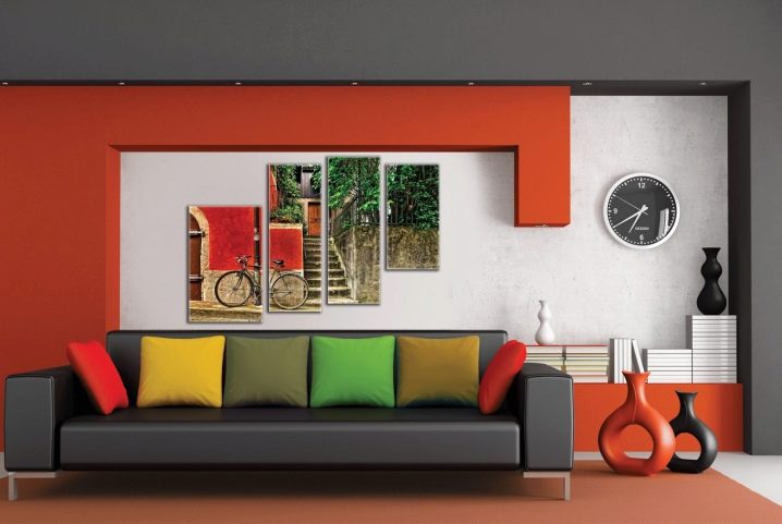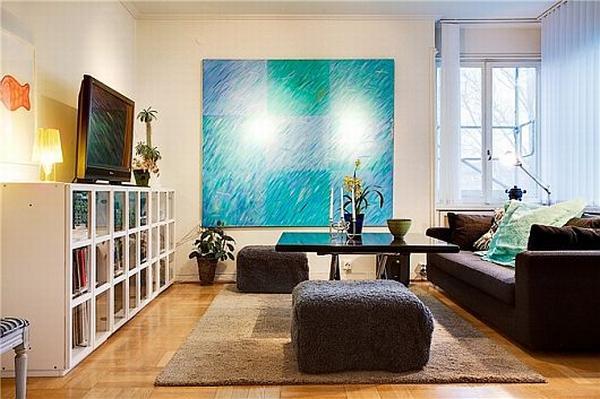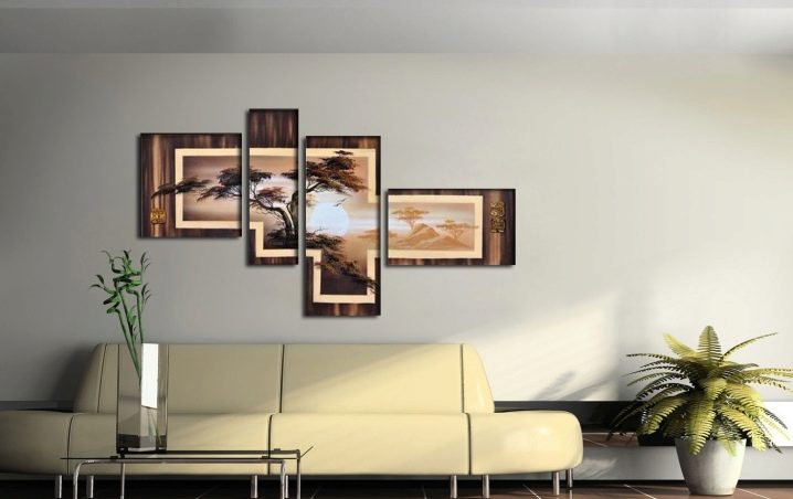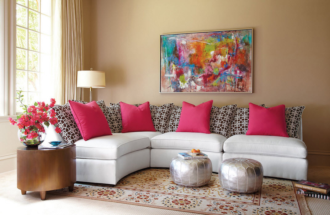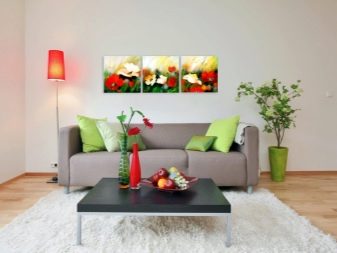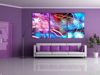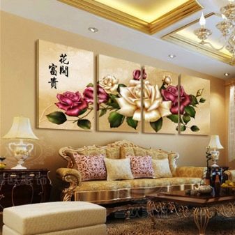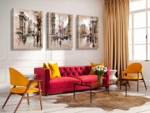 - Berücksichtigen Sie die drei Grundfarben des Innenraums Ihres Raumes und bauen Sie darauf auf. Aber es ist nicht notwendig, dass diese Farben auf der Leinwand dominieren, es ist genug, dass sie interessante Plotdetails hervorheben. Die Farben dieser Details überlagern sich mit anderen Dekorelementen und schaffen ein Gefühl der Vollständigkeit.