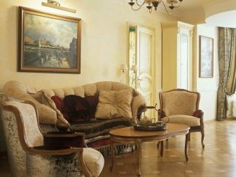 - Klassisch - Stil, Traditionen gehorchen, Symmetrie und klare Linien lieben. Die Einrichtung ist zurückhaltend, meist sind es Gemüsedrucke auf der Tapete, lakonische Stuckarbeiten oder Leisten an den Wänden. Wählen Sie ein Bild für den Innenraum in einem klassischen Stil, achten Sie auf Stillleben, verschiedene Landschaften und Porträts.