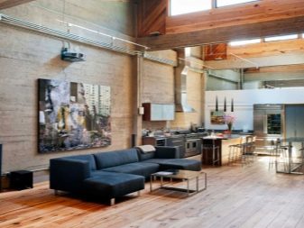 - Loft - Der Stil wurde in New York geboren und spiegelt die Merkmale dieser Stadt wider. Es gibt keine Trennwände, vom Boden bis zur Decke reichenden Fenster, es wird auf jeden Fall eine Mauer mit Mauerwerk sein, und natürliche Materialien und Holz dominieren.Sie können einen solchen Raum mit Plakaten mit Stadtszenen dekorieren.