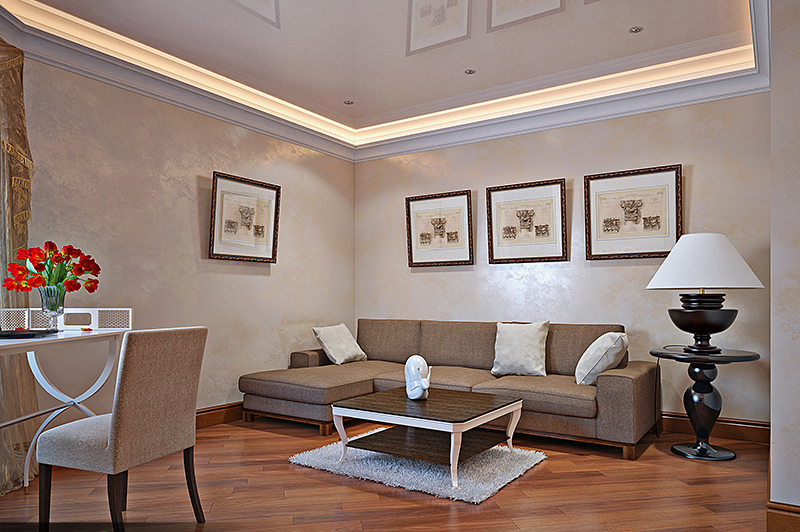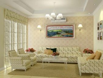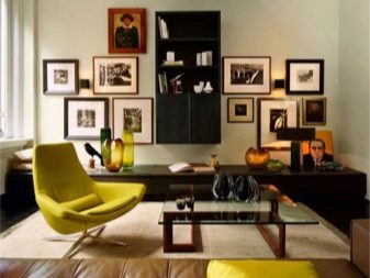 Gemälde im Inneren des Wohnzimmers: die Feinheiten der Wanddekoration