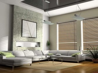 - Moderner Stil - nicht einfach und erstaunlich, mit Elementen des Minimalismus, Loft, Art Deco und Eklektizismus. Hier finden Sie eine Kombination aus Naturholz mit Kunststoff und Glas. Zurückhaltend in der Farbe, aber überraschende helle Akzente.