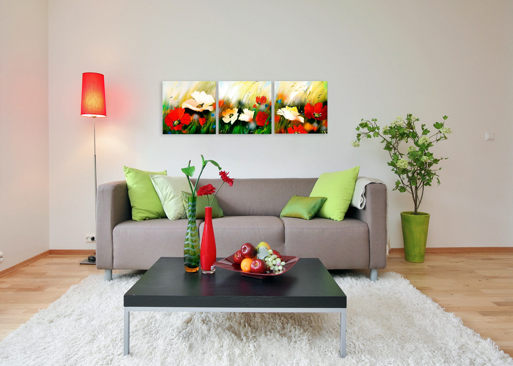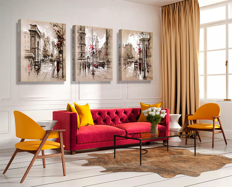 Es ist auch wichtig, die Farbe des gesamten Raumes zu beobachten, normalerweise sind dies die drei Grundfarben in Ihrem Inneren, auf die Sie sich bei der Auswahl eines Gemäldes verlassen müssen.