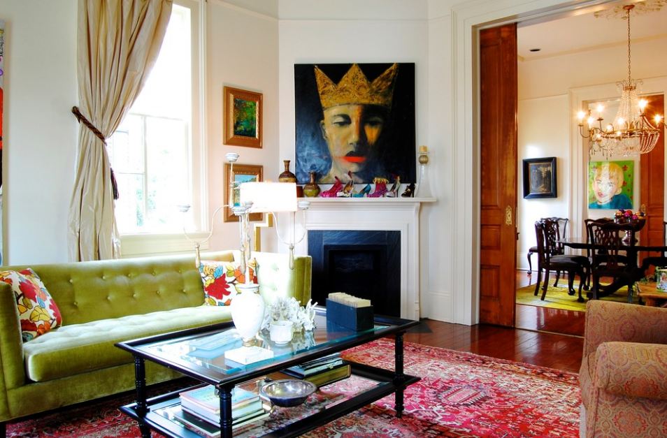 - Eklektisch - eine Sammlung kongenialer Stile, normalerweise zwei oder drei. Eklektizismus bietet die Möglichkeit, Individualität zu zeigen, und erfordert daher keine strikte Einhaltung der Regeln bei der Auswahl eines Dekors, einschließlich der Malerei.