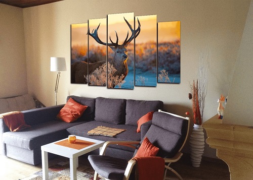 - Betrachten Sie die Größe des Raumes, insbesondere die Wand: Wenn die Größe klein ist, wählen Sie mittelgroße Leinwände, wenn die Wand komplett leer ist, dann wird eine große Leinwand gut funktionieren, die Aufmerksamkeit erregen wird.