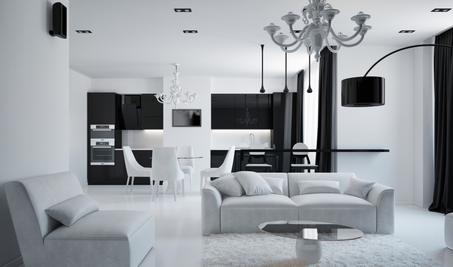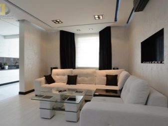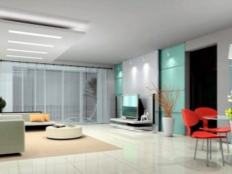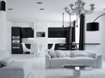 Was genau muss loswerden, so kommt es vom hell gemusterten Teppich mit einem langen Nickerchen. Jede Technik im Stil von "Retro" wird ebenfalls unpassend sein. Präferenz ist besser zu geben glatte monophone Oberflächen, ohne schreiende Drucke. Solche sollte Tapeten oder Farbe für Wände, Einbaugeräte, Decken, Möbel, alle Arten von Schränken und Schubladen, Fliesen sein. All dies wird den Raum hell, geräumig, modern, dynamisch, einzigartig und sogar futuristisch machen.