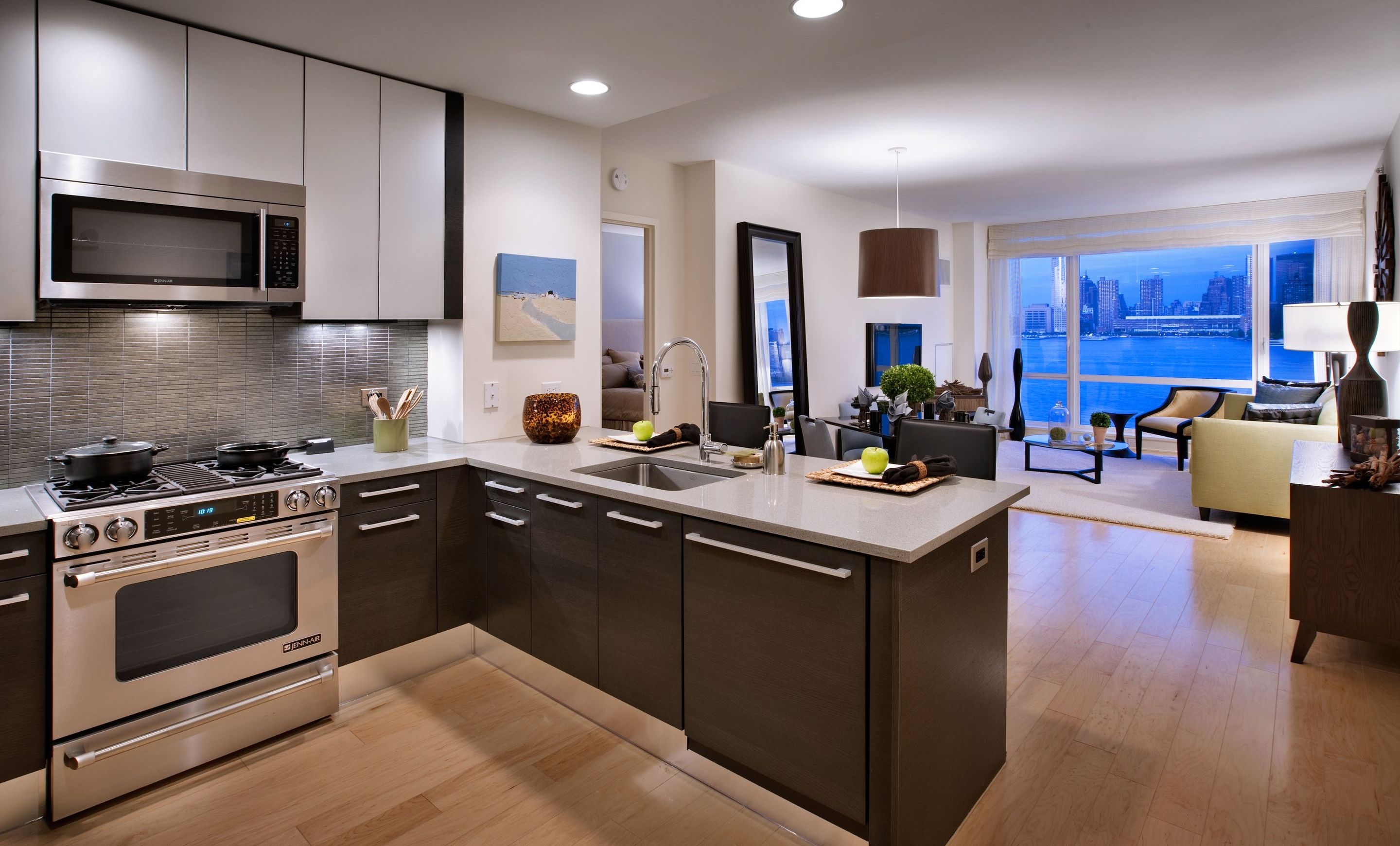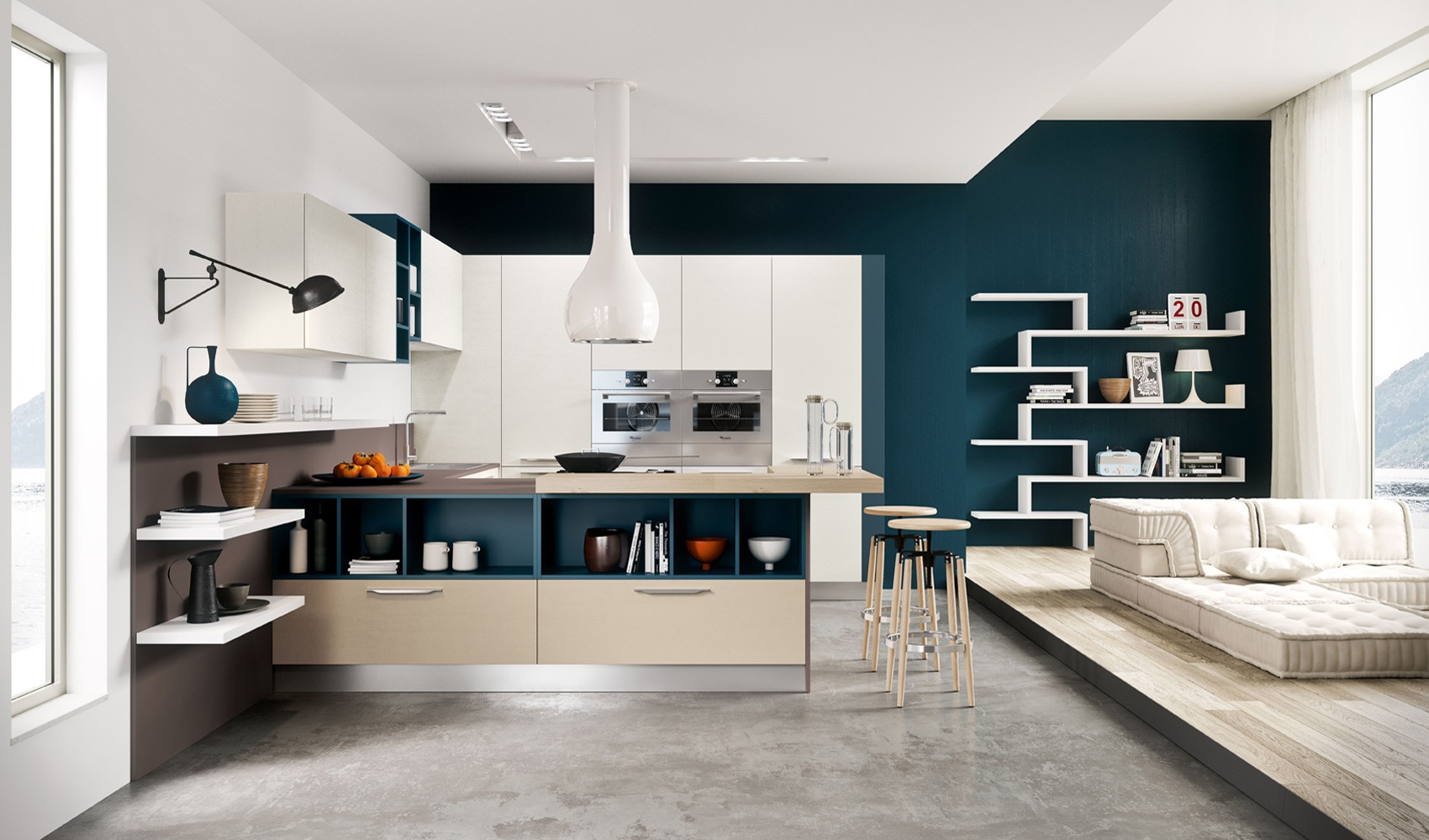Das Innere der Küche-Wohnzimmer im Stil von High-Tech
