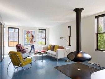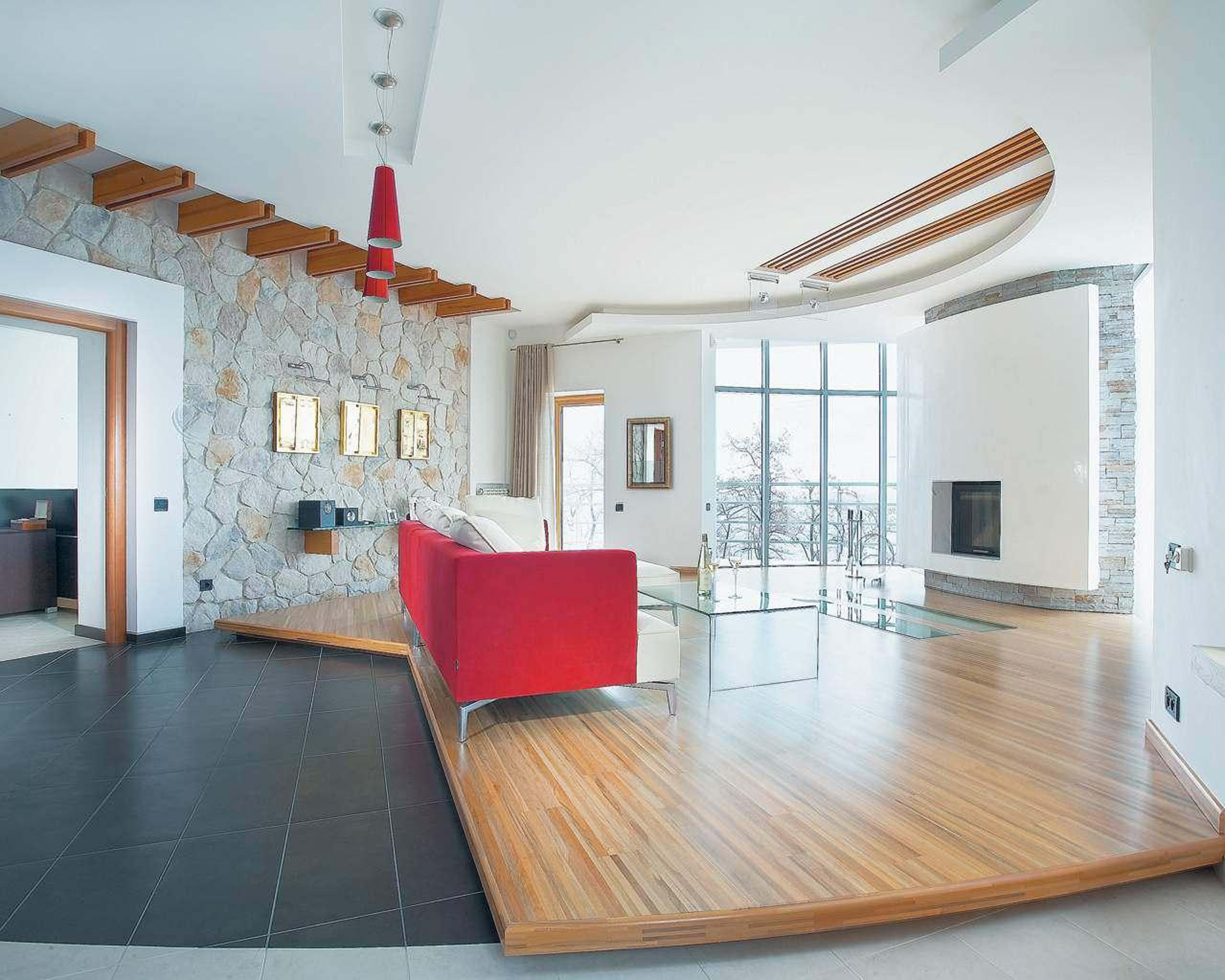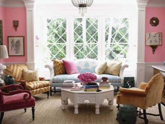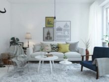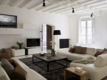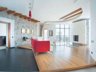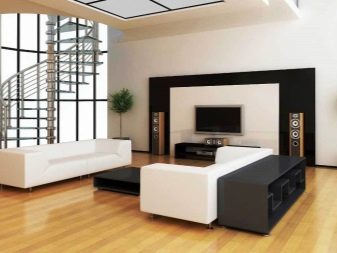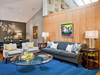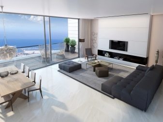 Es hat auch seine eigenen Nuancen: Da viel Platz ist, besteht die Gefahr, den Raum mit Möbeln zu überladen. Daher die Hauptregel - die Möbel sollten nur 50 Prozent des gesamten Raumes einnehmen.
