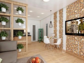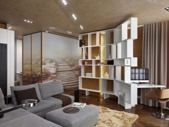Die Anordnung und Auswahl der Funktionsbereiche hängt weitgehend von der Raumfläche ab. Geräumige Räume können die Installation zusätzlicher Trennwände leisten. Kleine Wohnbereiche sind durch mehrstöckige Böden und Möbel unterteilt.