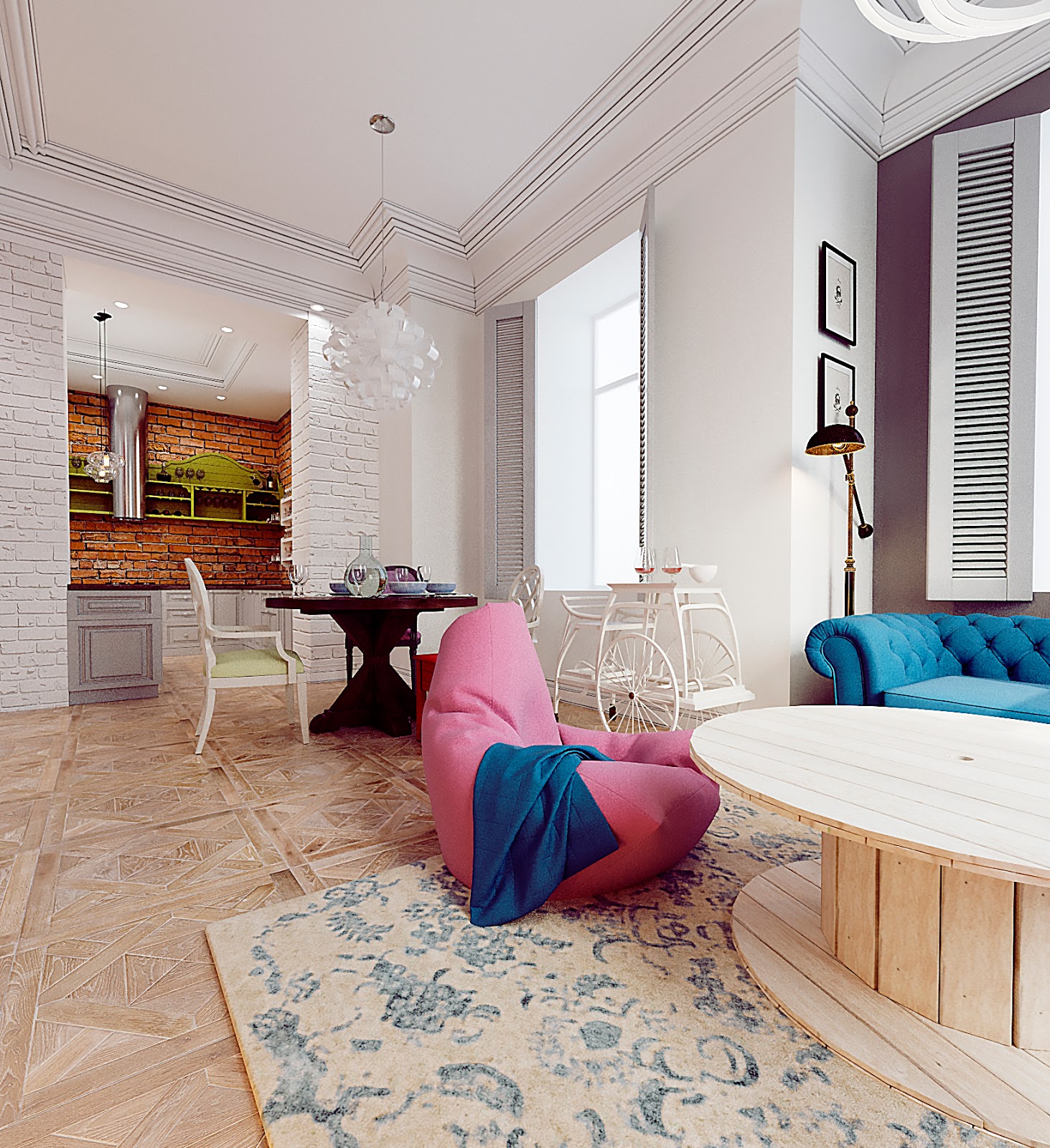 - Eklektizismus Es hilft, auf den ersten Blick verschiedene Dekorationsdetails zu kombinieren - Möbel aus verschiedenen Kollektionen oder sogar Epochen, die sich in Stil, Textur und Farbe von dekorativen Objekten unterscheiden.