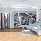Wenn Sie das Dekor an den Wänden machen möchten, können Sie dafür Spiegel oder glänzende Paneele verwenden, die an den am besten geeigneten Stellen angebracht sind. Sie können der Hintergrundbeleuchtung solche Elemente hinzufügen, um sie zusätzlich hervorzuheben. Wenn die Wand fertig ist, mit der Arbeit auf dem Boden fortfahren.