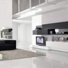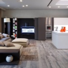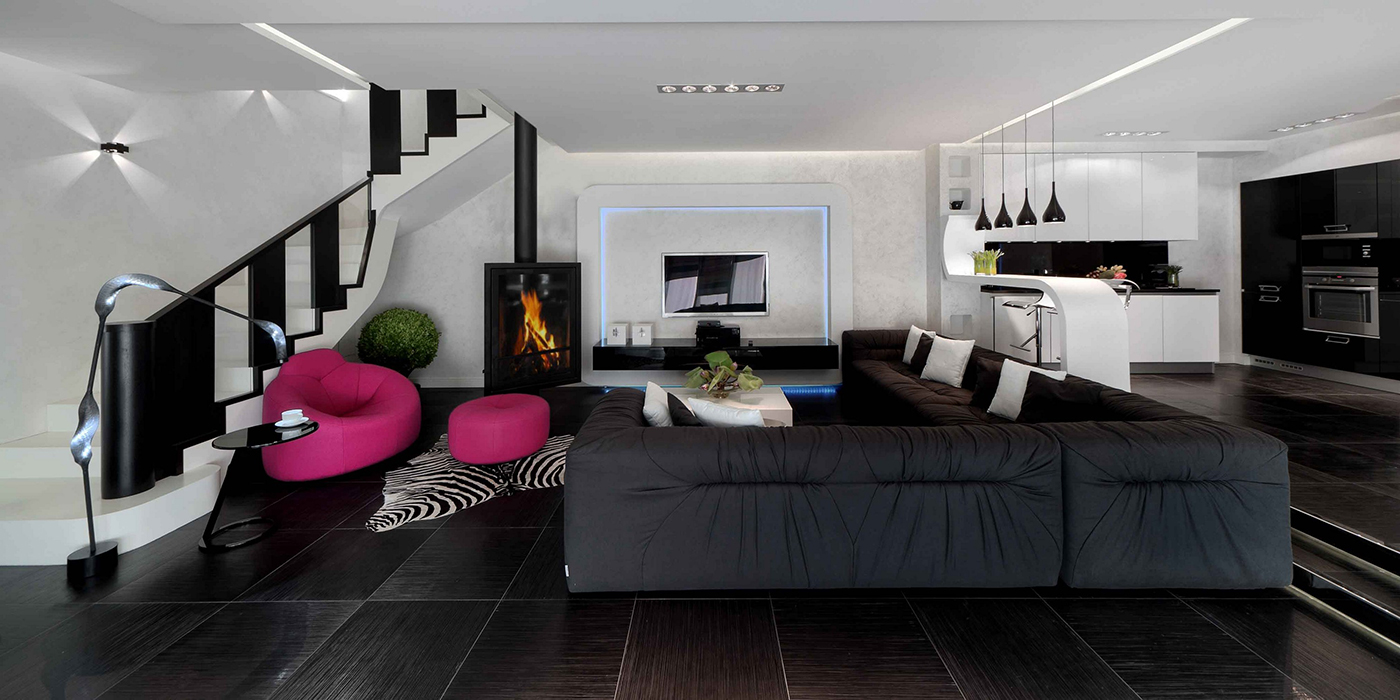 Jüngste Trends deuten darauf hin, dass der moderne Stil von Wohnungen zu Landhäusern übergeht., in ihnen eine Fülle von Plastik und Glas, phantasievolle Formen einzuführen und Raum maximal zu entladen. Diese Richtung eignet sich für Wohnungen und Häuser unterschiedlicher Größe: Wenn Sie möchten, können Sie ein solches Design auch in einer kleinen Wohnung schaffen, indem Sie die ästhetische Raumwahrnehmung verändern. Dieser Trend ist dem Minimalismus und der Zurückhaltung inhärent, er manifestiert sich in allem. Formen des Raumes haben strenge Konturen, die Möbel sind lakonisch.