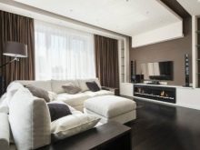 Um eine gute moderne Reparatur zu machen, brauchen Sie eine Menge Geld. Dies liegt an der Tatsache, dass hochwertige schöne Materialien und spezielle Möbel viel kosten, die neueste Technologie wird den größten Teil des Budgets für die Gestaltung eines neuen Wohnraums wegnehmen. Wenn Sie die Möglichkeit haben, den Löwenanteil des Familienbudgets für die Schaffung eines stilvollen Wohnzimmers zu zahlen, dann gehen Sie darauf. Wenn jedoch die Finanzen wenig sind, ist es besser, bei etwas anderem zu bleiben, weniger anspruchsvoll.