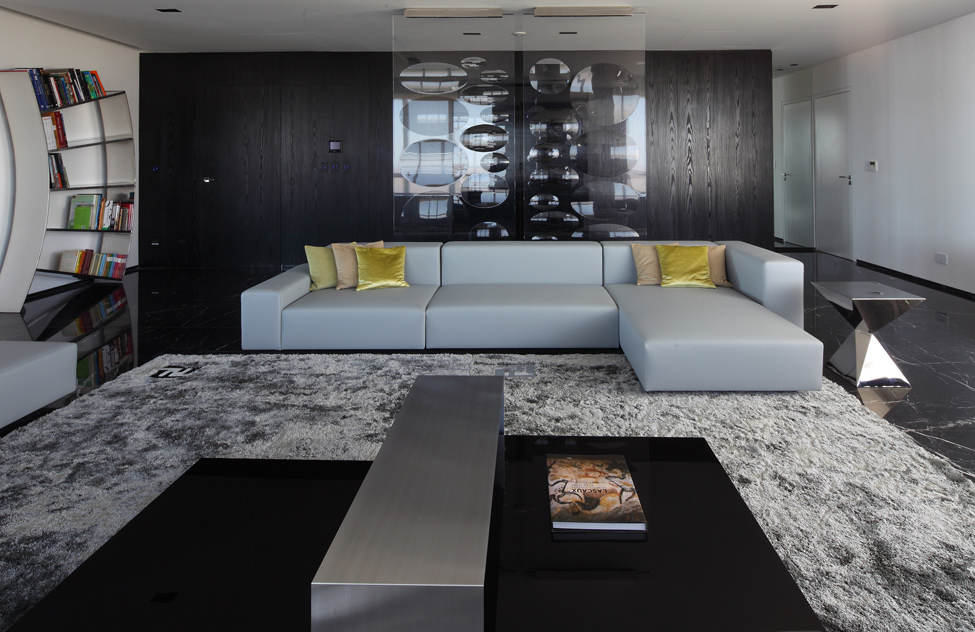 Praktikabilität ist wichtig für High-Tech-Stil, weil die Möbel im Raum ausschließlich für bestimmte Zwecke platziert ist. Wenn Sie den Raum diversifizieren möchten, können Sie transformierbare Möbelelemente hinzufügen. Diese können mobile Couchtische oder befestigte Tische, Regale mit Regalen für Zubehör (einschließlich eingebauter), Metallstühle, modulare Sofas und Sessel sein.Wenn wir über Polstermöbel sprechen, sollten die Farben meist leicht sein, obwohl helle Farbtöne manchmal ein kontrastierendes Bild erzeugen können.