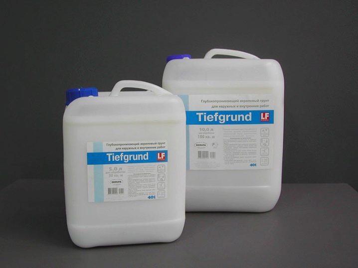 Acryl-Primer-Mischung kann auf jedes Substrat aufgetragen werden., unabhängig vom Material. Diese Zusammensetzung dringt sehr tief in die Oberfläche ein - etwa 10-15 Millimeter, sie kann sowohl für Wände als auch für Decken verwendet werden. Neben ihren universellen Eigenschaften kann eine Acrylgrundierung für den Innenbereich auch antiseptische Eigenschaften haben, weshalb sie für Räume mit hoher Luftfeuchtigkeit geeignet ist.
