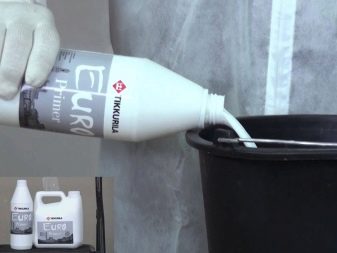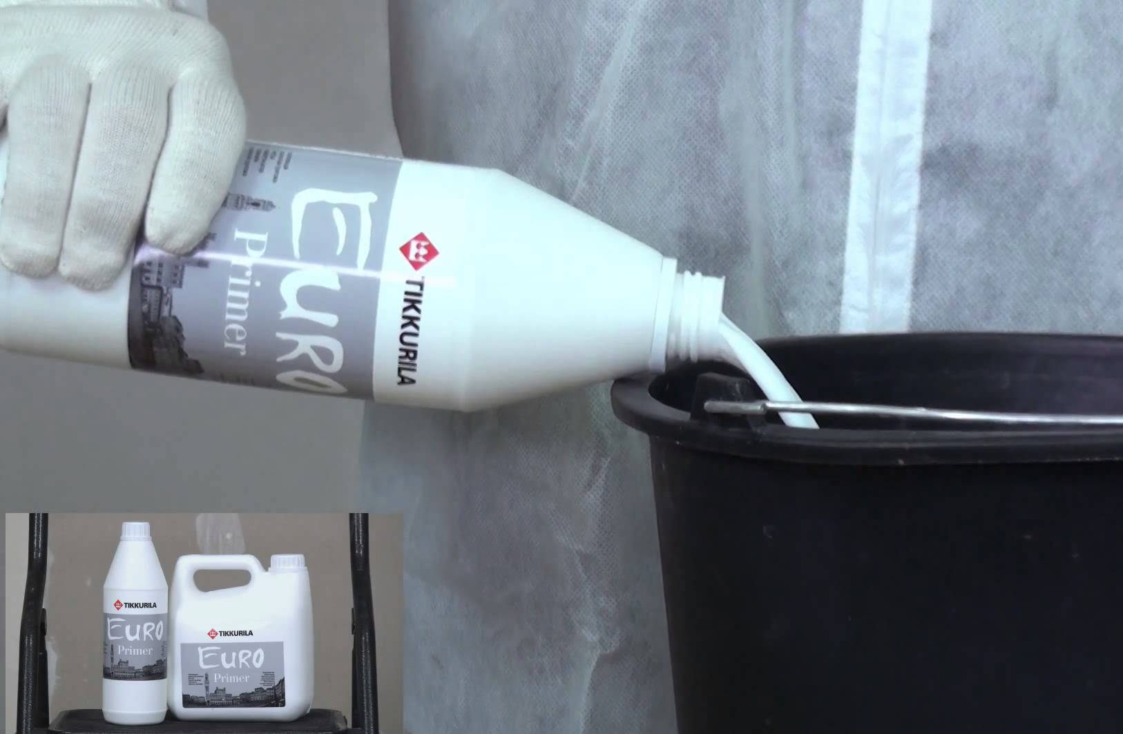 Es ist wichtig, die Sicherheitsvorkehrungen zu befolgen, daher müssen Sie eine Schutzbrille tragen und Handschuhe tragen sowie Ihren Kopf bedecken. Dann müssen Sie die Anweisungen, die auf dem Behälter mit einer Grundierung angegeben sind, studieren. Einige Formulierungen müssen vor dem Gebrauch gemischt werden, hierfür wird eine elektrische Bohrmaschine oder ein anderes Werkzeug verwendet. Die Mischung sollte die gesamte Oberfläche der Wand abdecken, achten Sie darauf, keine einzige Stelle zu verpassen.