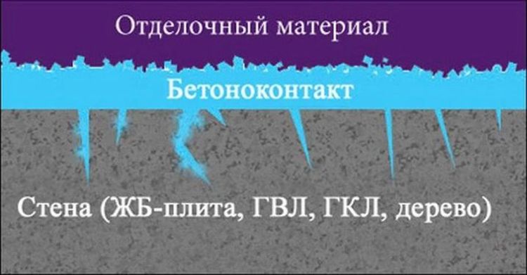 - "Betonokontakt" kann in Verbindung mit tief eindringenden Böden verwendet werden, die zuerst aufgetragen werden. Die Verarbeitung erfolgt in zwei Schichten, und die Schicht aus "Betonokontakt" wird nach dem vollständigen Trocknen der vorherigen aufgebracht.