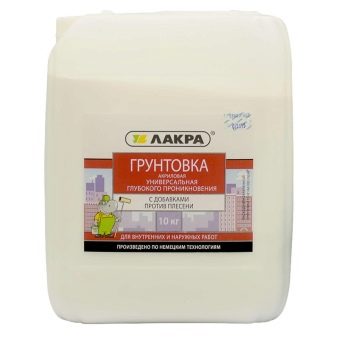 Es wird angenommen, dass Am vielseitigsten ist die Acrylgrundierung. Es ist das beliebteste und wird oft für den Heimgebrauch verwendet. Es ist für fast alle Materialien geeignet, mit Ausnahme von Metall. Acrylformulierungen erleichtern die Arbeit und dringen bis zu einer Tiefe von 1 cm in das Material ein.