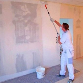 Viele haben bemerkt, dass man, wenn man an die rohe Wand malt, nur auf alle Mängel, Rauhigkeiten und Unregelmäßigkeiten aufmerksam macht.Aber wenn Sie die Oberfläche mit einer Zündkapsel behandeln, wie früher bemerkt, wurde die gemalte Wand später besser und attraktiver. Dann begannen sie, es zu benutzen, bevor sie andere Deckschichten auftrugen.