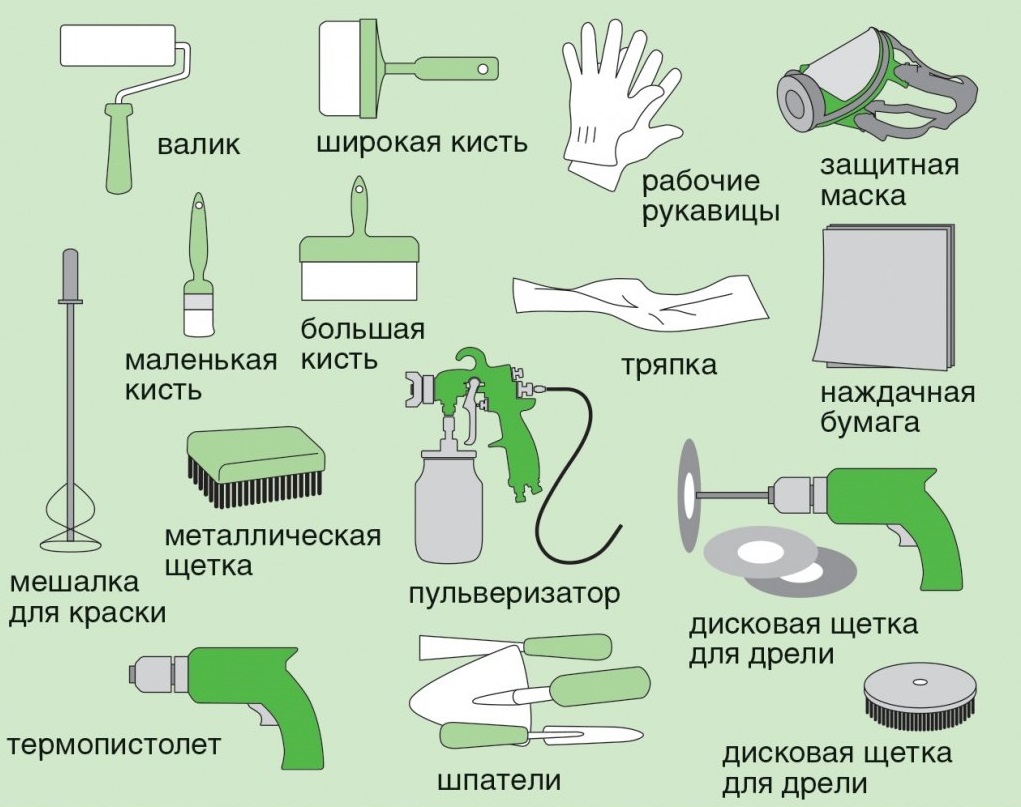 Um die Wände gründlich zu grundieren, müssen folgende Werkzeuge erworben werden: