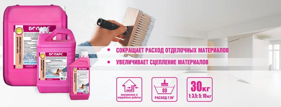 Die zu behandelnde Oberfläche bleibt porös. Deshalb dringt der Boden viel besser in die mineralische Zusammensetzung ein und das Finish wird besser auf das Material aufgetragen. Darüber hinaus enthalten tief eindringende Imprägniermischungen oft fungizide Zusätze, die Wände und andere Oberflächen vor Pilzbefall und Schimmelbefall schützen.