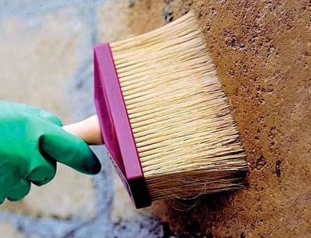 Aber wenn die Mineraloberfläche zu locker ist und große Poren hat, dann tritt ihre Stärke im Zweifel auf. In diesem Fall werden üblicherweise verstärkende Primer verwendet.Ihre Zusammensetzung umfasst Klebstoffe, die in große Poren eindringen und diese ausfüllen, wodurch die Spritzeroberfläche verstärkt wird. Aber in diesem Fall erhöht sich der Verbrauch dieser Art von Primer-Mischung.
