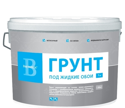 Primer für flüssige Tapeten ist für den Gebrauch von einem Heim Handwerker zur Verfügung. Es hat fungizide und bakterizide Eigenschaften und zeichnet sich durch akzeptable Kosten aus.