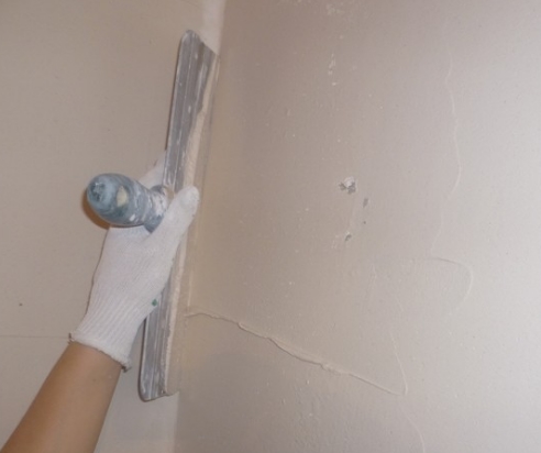 - Nach dem Trocknen der letzten, überprüfen wir die Wände durch Berührung.
