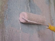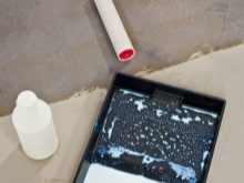 - Die Grundierung wird mit einer Rolle oder einem Pinsel über die Oberfläche verteilt, besser ist es, große Flächen mit einer Airbrush zu behandeln;