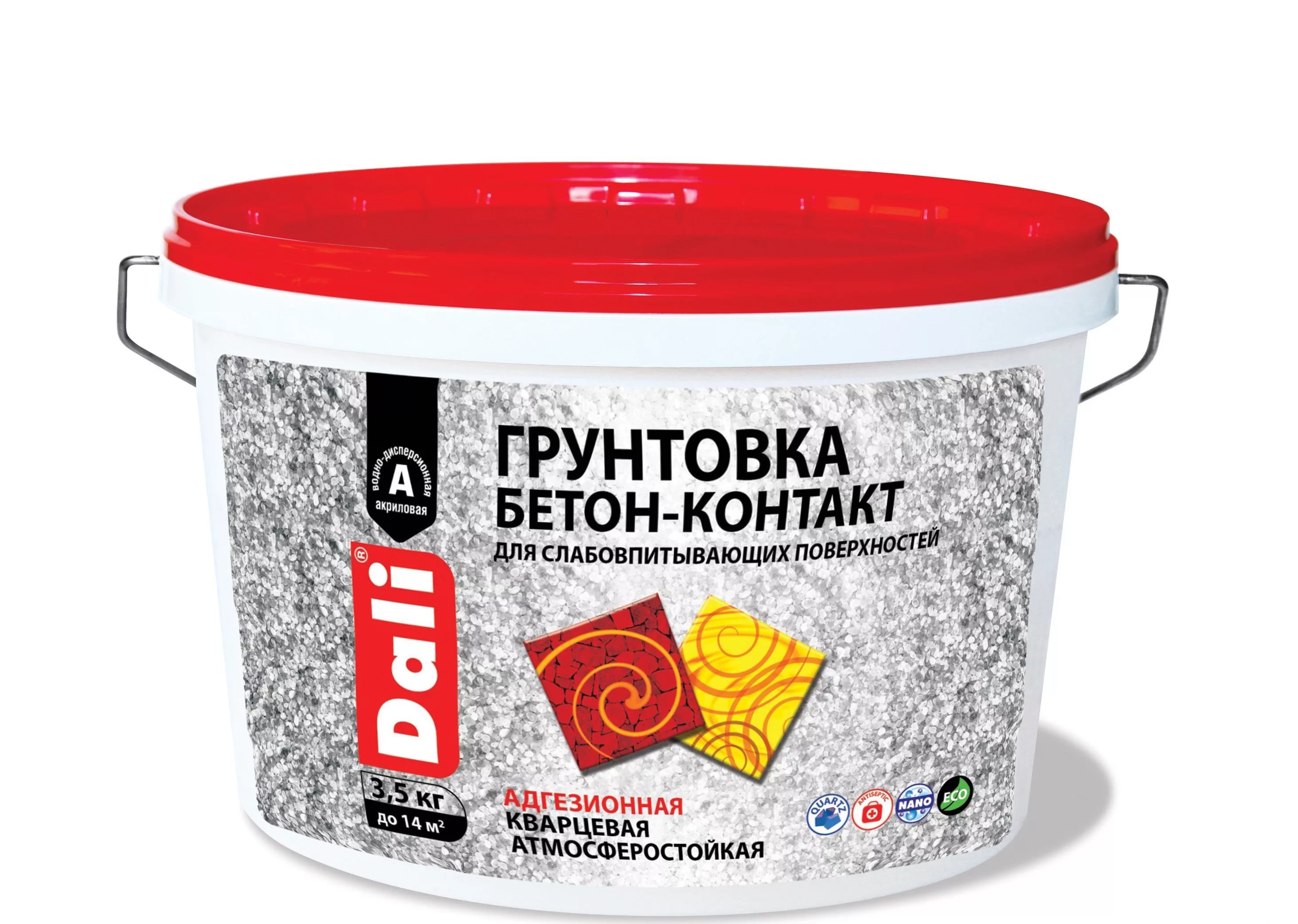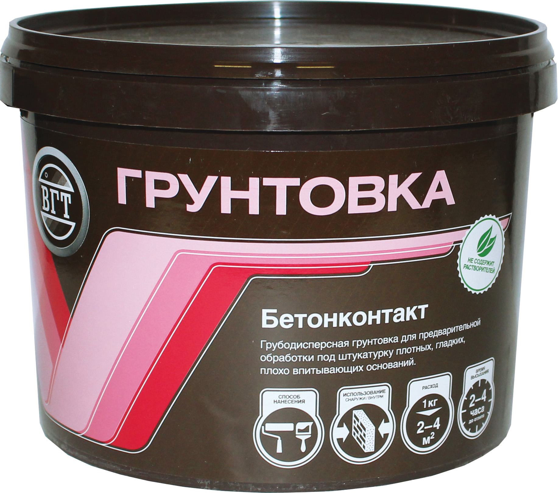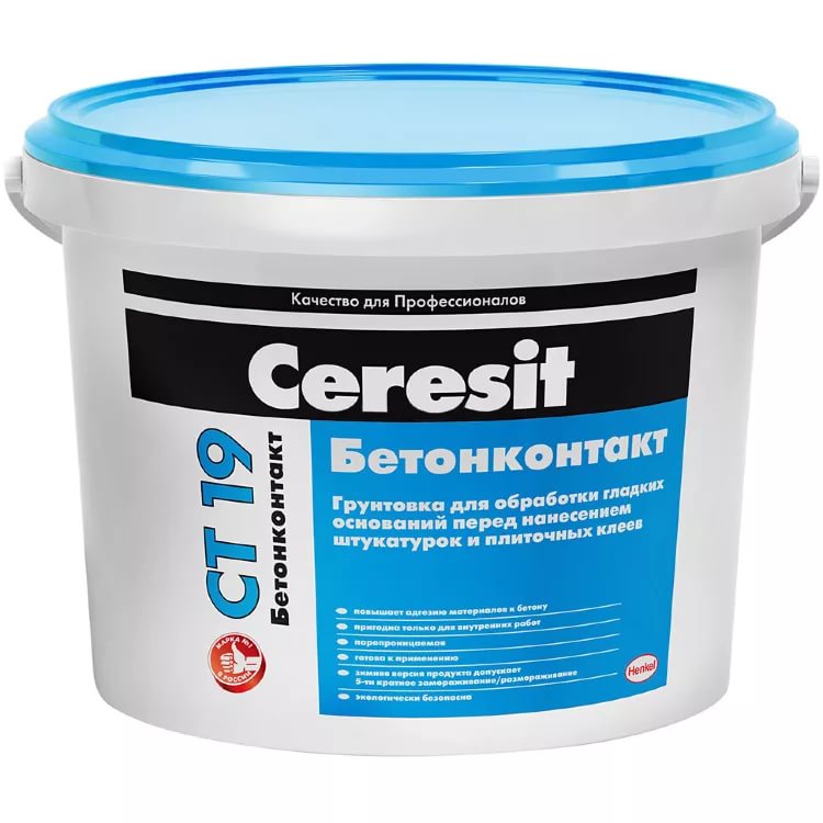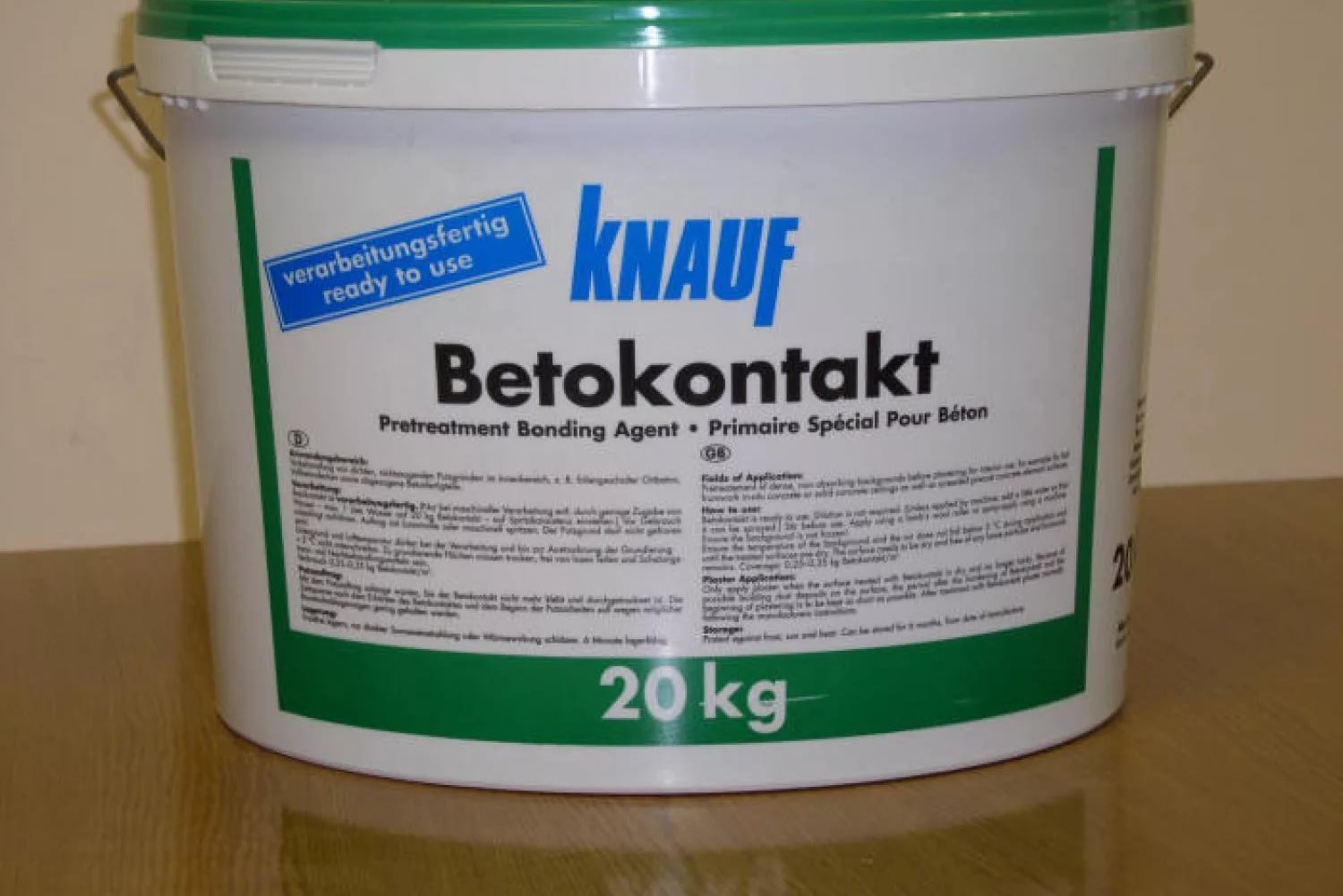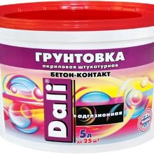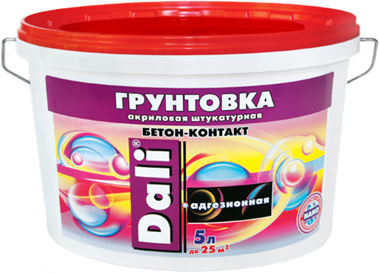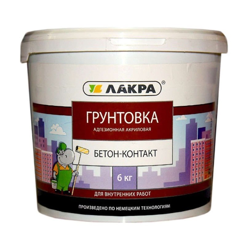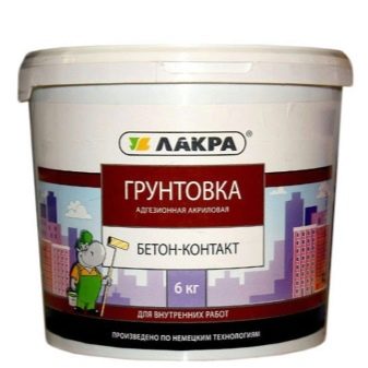 Wenn die Klebeeigenschaften am wichtigsten sind, ist es besser, eine Acrylgrundierung zu verwenden. "Konkreter Kontakt". Nach dem Auftragen wird die Oberfläche rauh, während sich Putz und Leim gut vermischen. Dementsprechend bleiben auch alle Materialien, die an dieser Oberfläche haften, gut erhalten. Produkte wie Beton-Contact Lakra und Cerfecit CT19 haben die gleichen Eigenschaften.
